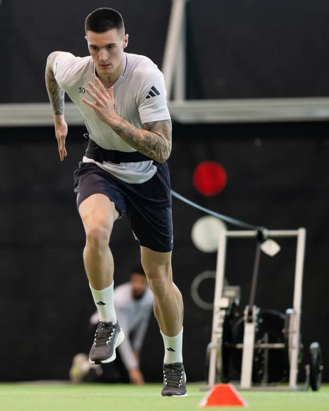 他练的不是什么油炸丸子、踩单车,而是纯纯的NFL级别爆发力特训。核心科目只有一个:静止状态下的极限起步和瞬间加速。