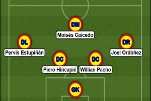 厄瓜多尔防线: 后腰凯塞多:切尔西主力后腰,身价9000万欧(转会费1.16亿欧) 左边卫埃斯图皮尼安:布莱顿主力边卫,身价3000万欧 中卫因卡皮耶:勒沃库森不败赛季主力之一,身价5000万欧 中卫帕乔:四冠王巴黎主力后卫,身价6500万欧 右边卫奥多涅兹:布鲁日21岁天才小妖,身价2700万欧...