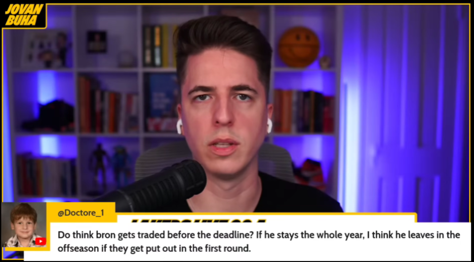 北京时间8月30日,湖人知名队记Jovan Buha在播客节目上与球迷互动。其中一个球迷询问詹姆斯申请交易的可能性有多大,Buha给出的回答如下——